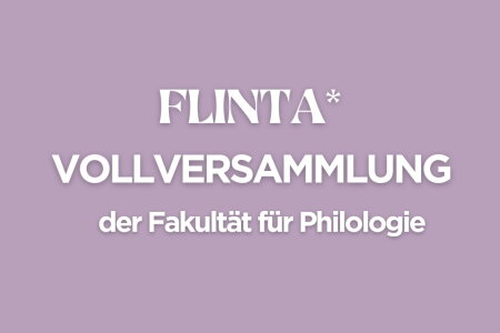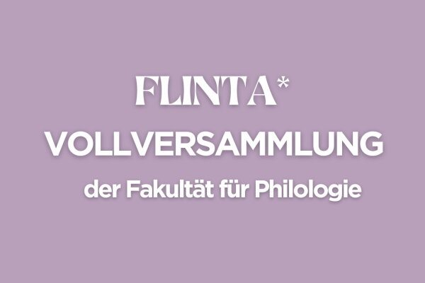 Am 28.10.25 um 12 Uhr (c.t.). findet unsere FLINTA*Vollversammlung im Dekanatssaal der Philologischen Fakultät (GB 5/160) statt.