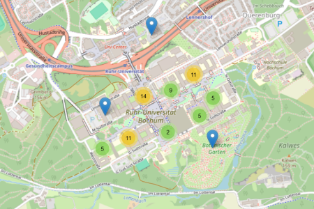Seit kurzem gibt es an der RUB eine neue filterbare Lernort-Karte, die Lern- und Aufenthaltsorte auf unserem Campus für Studierende sichtbar macht.